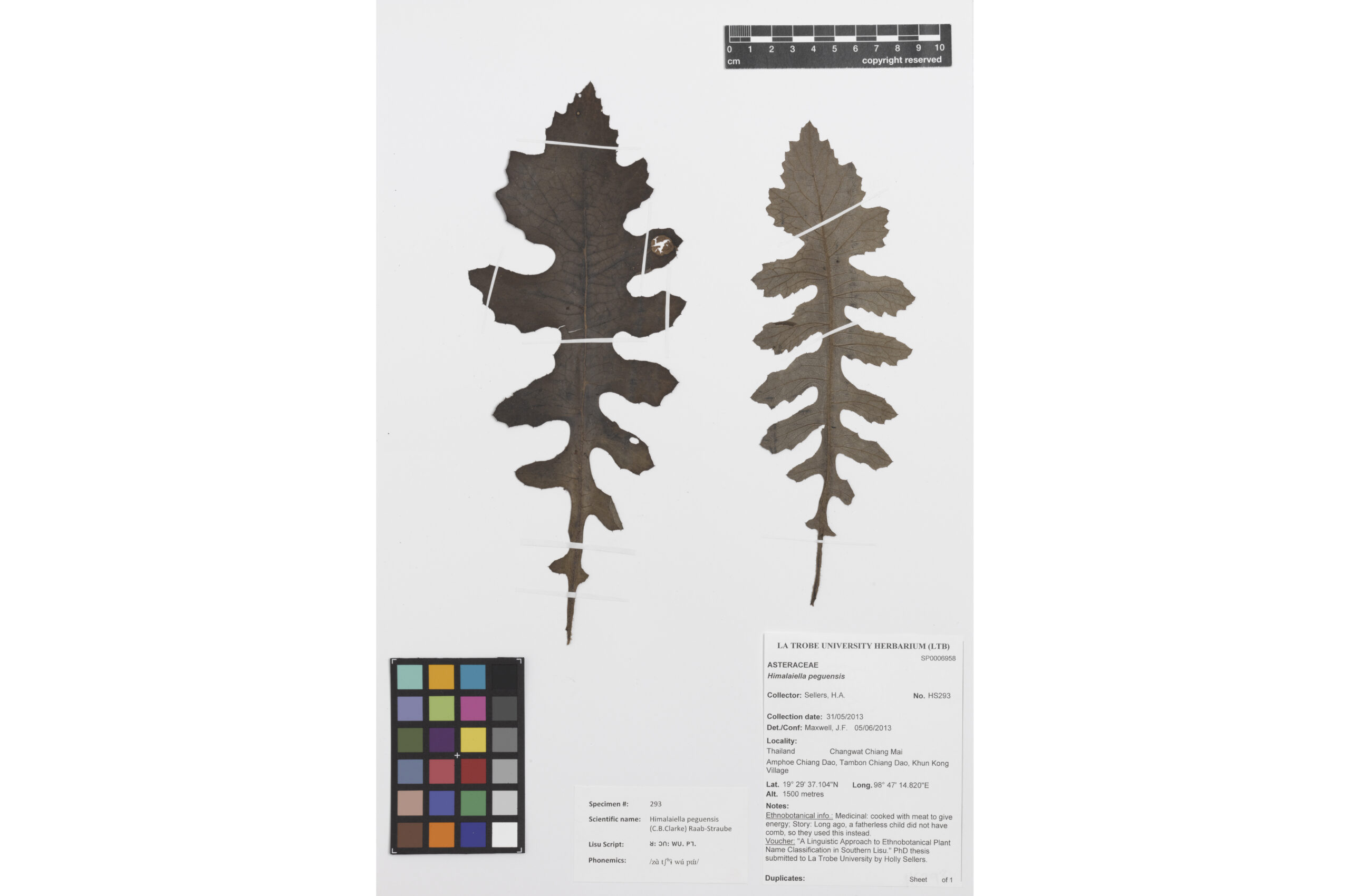 This exciting collection features 300 specimens collected in Northern Thailand as part of Dr Holly Sellers’ PhD research in the Department of Linguistics. Each specimen includes not only the scientific name, but vernacular name in the Lisu language and their uses.
